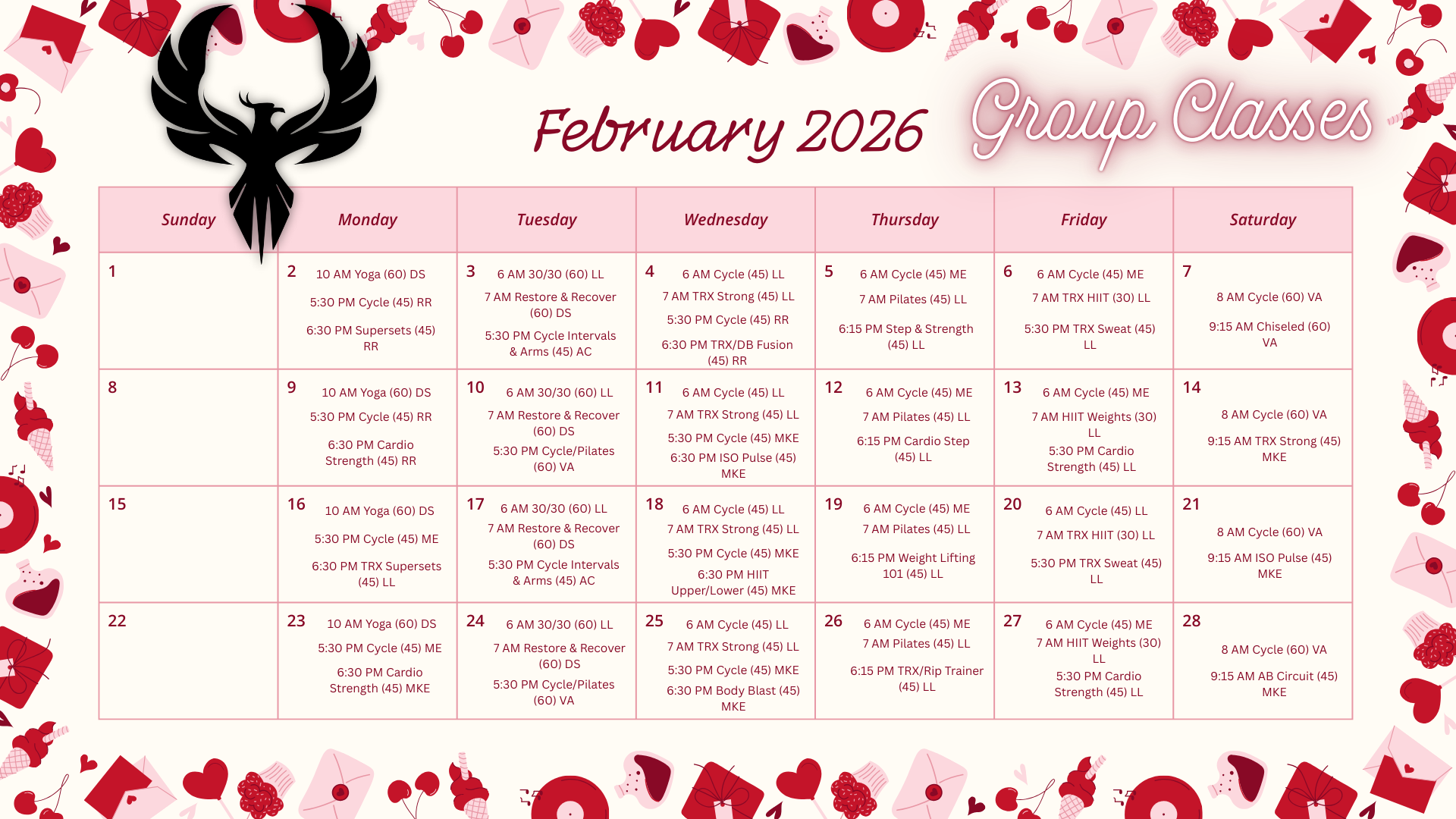 Red and Pink Cute Illustrated February 2026 Monthly Calendar